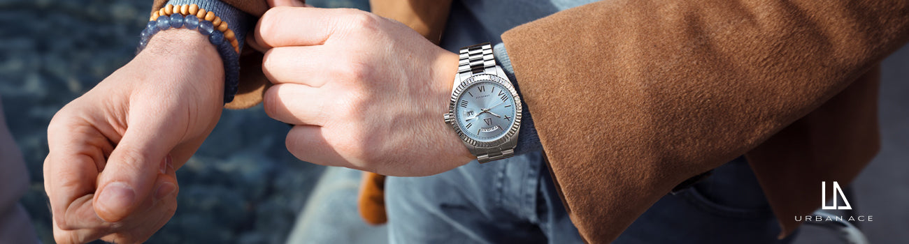Horloges met een stalen band zijn een populaire keuze onder liefhebbers van horloges. Deze horloges combineren duurzaamheid (vanwege de sterkte van de band) met een tijdloos design, waardoor ze geschikt zijn voor zowel formele als casual gelegenheden. Het gebruik van roestvrij 316L edelstaal zorgt ervoor dat de stalen Urban Ace horloge band niet alleen stijlvol is, maar ook bestand tegen dagelijkse slijtage en vlekken. Deze stalen heren horloges bieden niet alleen een tijdloos design, maar zijn ook bestand tegen dagelijkse slijtage dankzij het gebruik van roestvrij staal. Bij het kiezen van een horloge met een stalen band, is het belangrijk om te letten op de afwerking en het draagcomfort. Horloges met een geborstelde afwerking hebben vaak een moderne uitstraling, terwijl een gepolijste afwerking een klassieke charme kan bieden. Het juiste horloge kan elke outfit compleet maken en een statement van elegantie uitstralen!